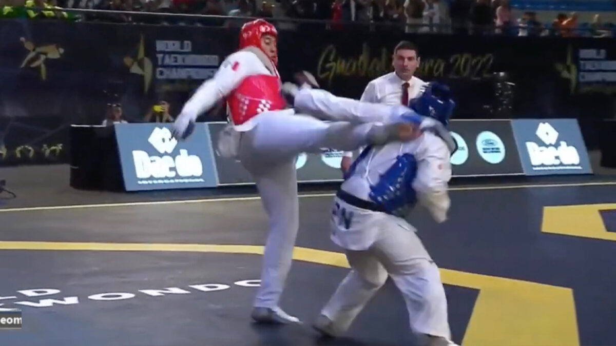 We gaan even terug naar het wereldkampioenschap taekwondo waarbij Carlos Sansores met een vernietigende trap zijn tegenstander naar de grond trapte. Nou is de knock-out van Kensuke Wada niet eens het meest opvallende uit dit fragment, maar wel de scheidsrechter die stug blijft aftellen terwijl het medische team checkt of Wada nog bij kennis komt.