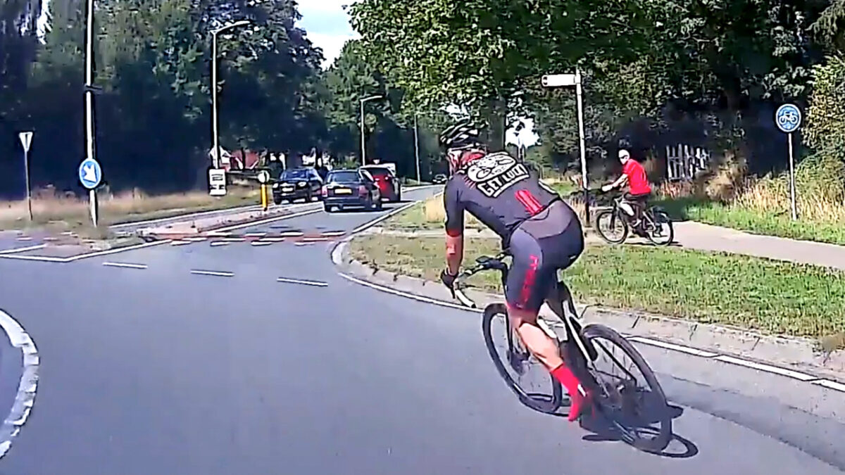 Onbeschofte wielrenner heeft z'n eigen verkeersregels en vliegt over rotonde in Oldenzaal