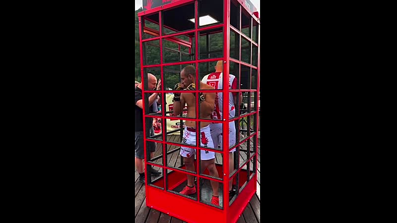 In Rusland kwam iemand met het fantastische initiatief om elkaar verrot te slaan in een rode telefooncel. Lekker knus, weinig ruimte en gewoon gezellig in elkaars aura. Kun je na de wedstrijd direct je moeder bellen om te vertellen hoe het ging of dat ze je op moet komen halen.