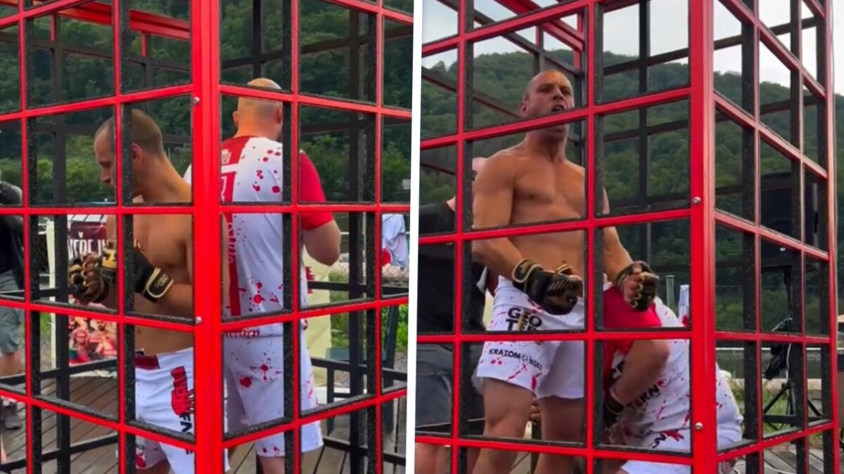 In Rusland kwam iemand met het fantastische initiatief om elkaar verrot te slaan in een rode telefooncel. Lekker knus, weinig ruimte en gewoon gezellig in elkaars aura. Kun je na de wedstrijd direct je moeder bellen om te vertellen hoe het ging of dat ze je op moet komen halen.