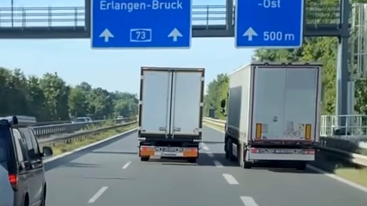 Nou is het per definitie al behoorlijk uitkijken als je op de Duitse Autbahn fahrt. Als je even 2 seconden niet je achteruitkijkspiegel checkt, dan zit er ineens een dikke BMW of Audi met knipperende koplampen op je achterbumper te plakken omdat 160 km/u op de linkerbaar toch echt niet snel genoeg is. Nou, dat is voor vrachtwagenchauffeurs onderling blijkbaar niet heel veel anders.