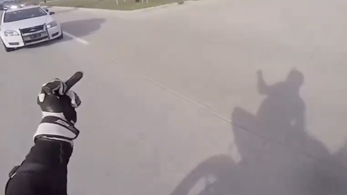 Deze motorrijder maakt ook kennis met het begrip kort nadat hij besluit een politiewagen een middelvinger te geven. Waarom hij dat doet is niet bekend, evenals wat hiervoor zich heeft afgespeeld, maar dat het een beetje sneu is moge duidelijk zijn. Na deze stoere middelvinger gaat hij er uiteraard snel vandoor, maar komt enkele momenten later in een situatie terecht waar hij liever niet in terecht had willen komen. Karma op z'n best, zullen we maar zeggen.