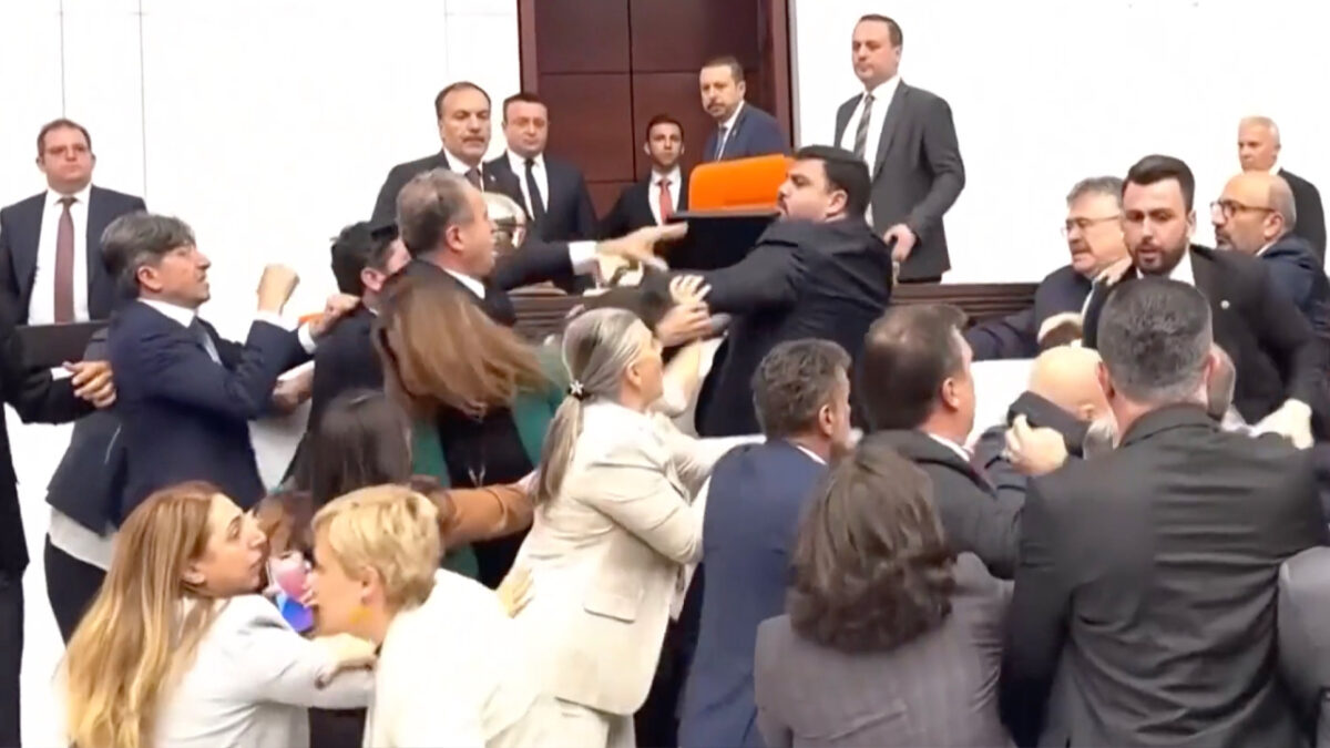 Massale vechtpartij uitgebroken tijdens discussie in het Turkse parlement