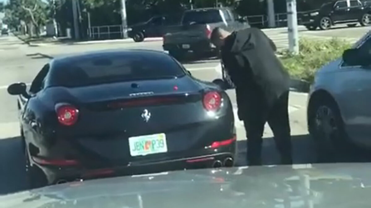 Automobilist moet zijn Ferrari even bijvullen en wordt belachelijk gemaakt