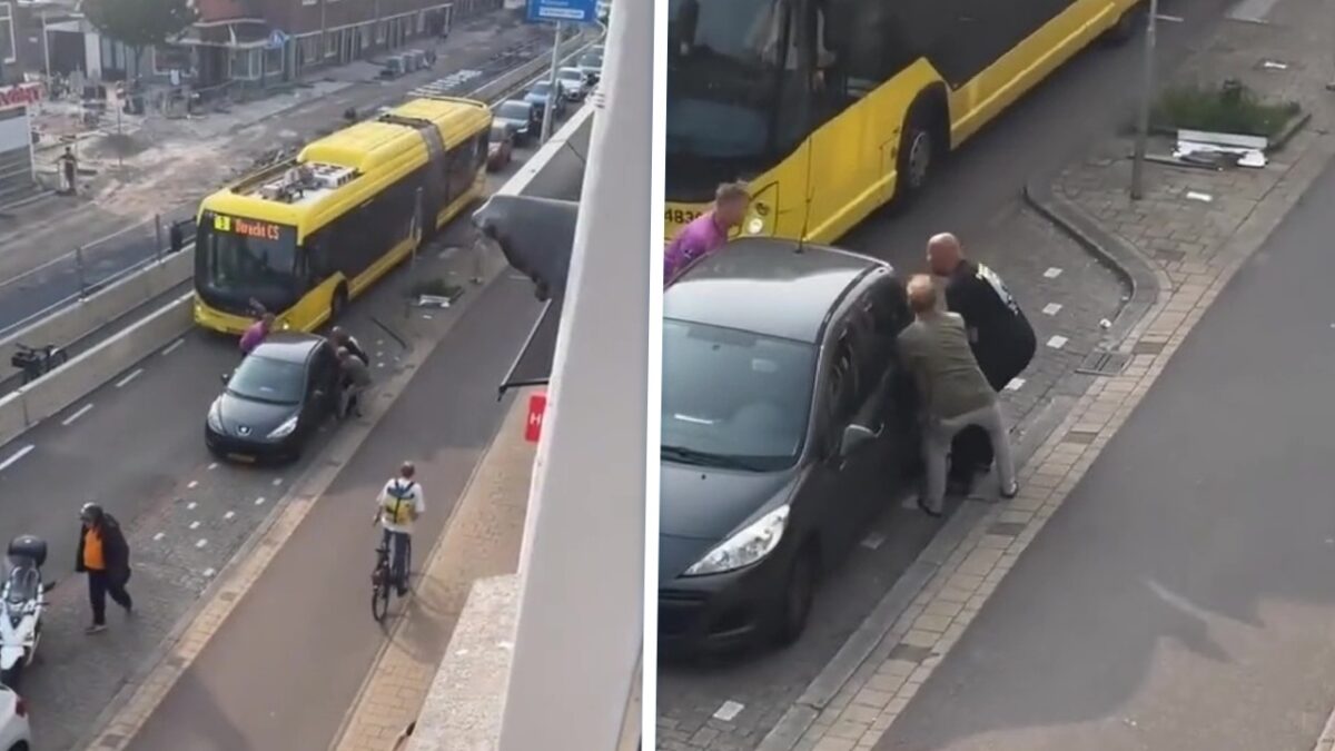 Het liep zelfs zo uit de hand dat omstanders probeerden de auto weg te tillen, maar voordat ze dat lukte kwam de bestuurder alweer aangelopen. Toch wel een ietwat ingewikkelde kwestie, want alhoewel het natuurlijk niet lekker is om in de file te staan hebben we hier al wel eens slechtere parkeeracties gezien. Sterker nog, alhoewel het altijd strakker kan staat hij keurig op de aangegeven witte lijnen en als je je velgen heel wil houden moet je natuurlijk ook niet té dicht langs de stoeprand willen staan...