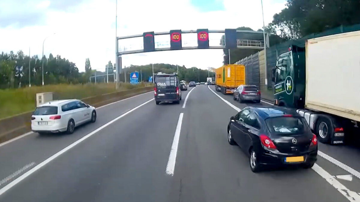 Nederlandse automobilist bijna geramd nadat 'ie meteen via het verdrijvingsvlak invoegt