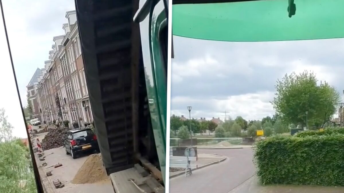 Normaal gesproken haalt iedereen braaf zijn auto uit de straat zodat de professionals ongestoord aan het werk kunnen, maar er zitten altijd figuren tussen die het óf op het allerlaatste moment pas doen óf hun auto überhaupt niet verplaatsen. Als je geluk hebt word je dan alsnog gewaarschuwd, maar in deze automobilist had pech en staat nu klem tussen een stapel stenen en en lading zand.