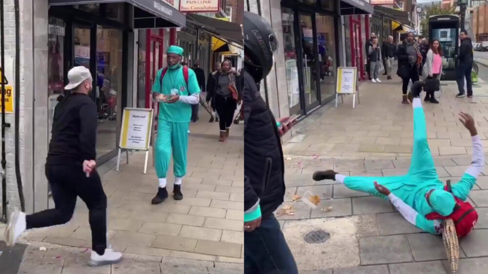 Oké, eigenlijk best kinderachtig, maar gegarandeerd dat als wij hier zo'n pak zouden hebben dat we niets anders zouden doen.