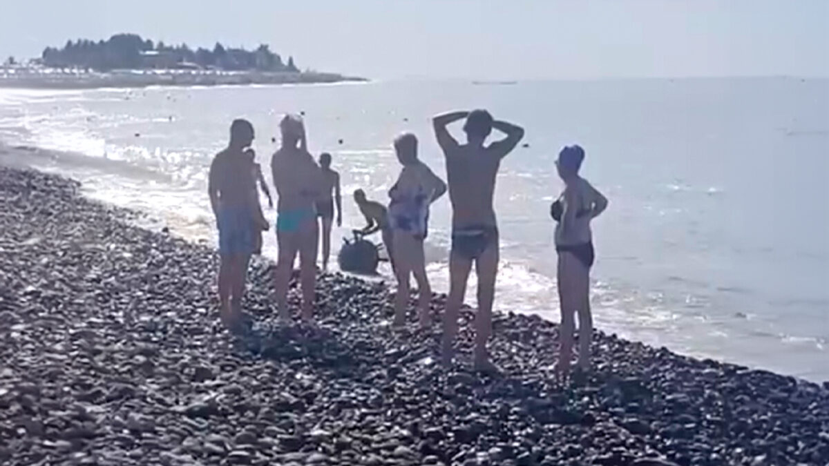 Maar verluidt zijn we hier getuige van een aantal Russen die in Sotsji een mijn uit het water hebben gevist die ze met z'n allen het strand op rollen. Toch bijzonder dat niemand een idee heeft wat ze aan het doen zijn. Of ze weten het wel en zijn gewoon heel erg dapper dom.