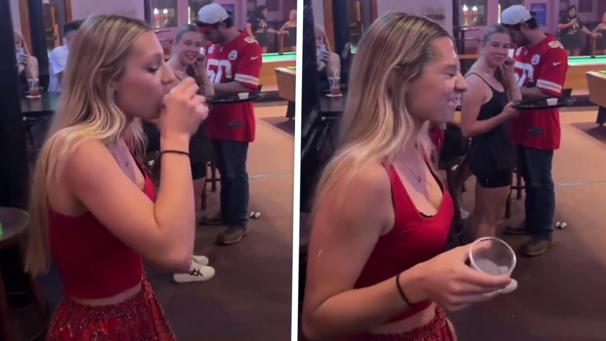 Barvrouw houdt zich niet bepaald in als ze een "Hurricane Shot" uitdeelt