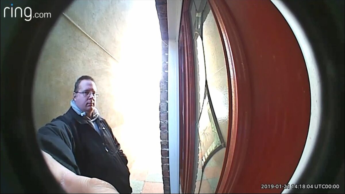 Deurcamera legt schitterend vast hoe een man wordt verrast door een trollvogel