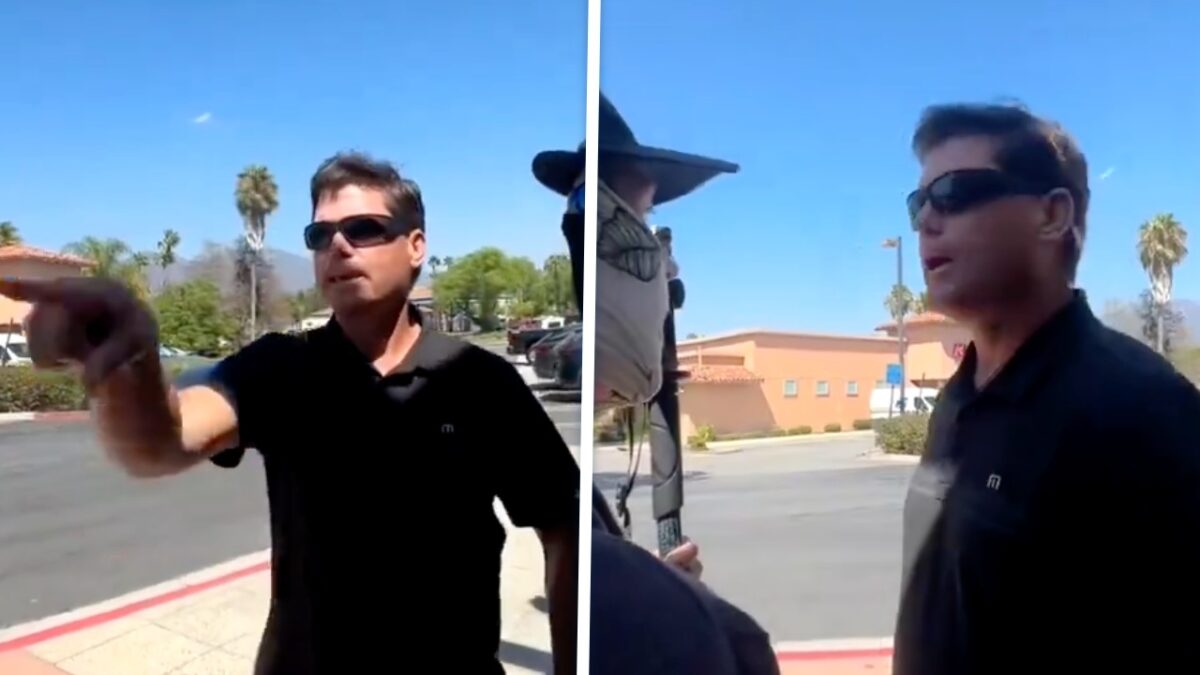Opgefokt haantje gaat de confrontatie aan met groep filmers, maar krijgt snel spijt