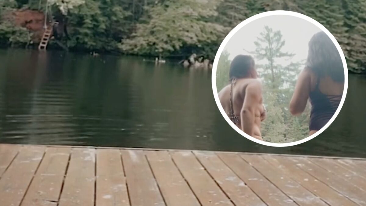 Hier stonden 2 vrouwen die een frisse duik wilden opnemen voor social media