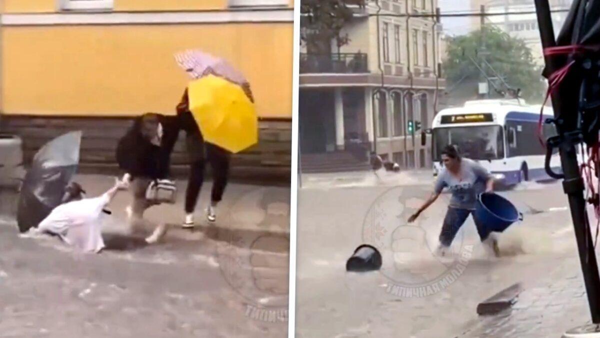 Omstanders redden vrouw die door overstroming in Chişinǎu wordt meegesleurd