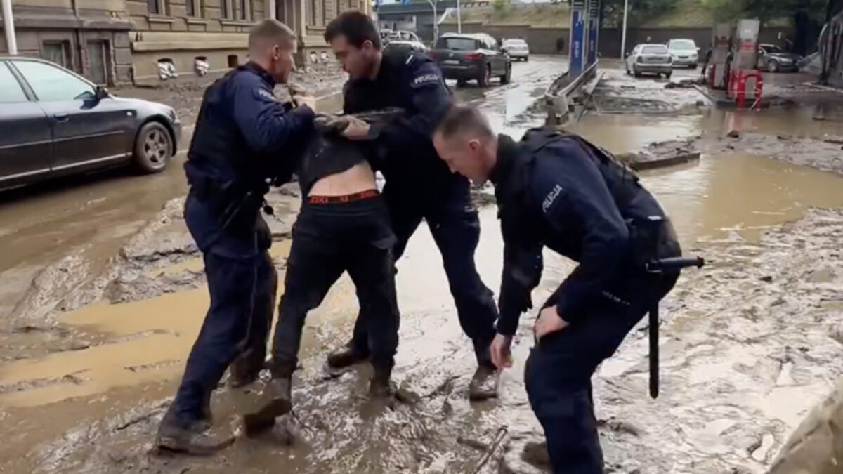 Ondanks deze ellende zijn er echter nog steeds idioten die hun kans schoon zien en andermans eigendom plunderen. Gelukkig was de Poolse politie in de buurt om deze sloebers op heterdaad te betrappen en in de boeien te slaan. Karma!
