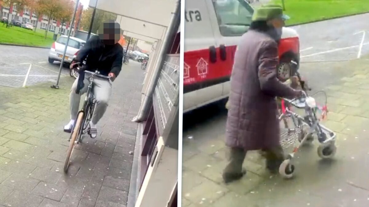 Fietser heeft geen boodschap aan oma die met haar rollator op de stoep loopt Virals