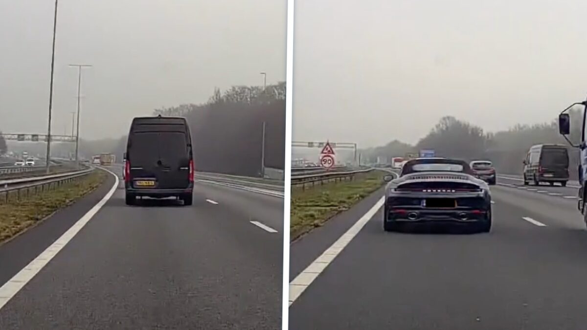 Ongeduldige verkeershufter in busje haalt Porsche in via invoegstrook op A27