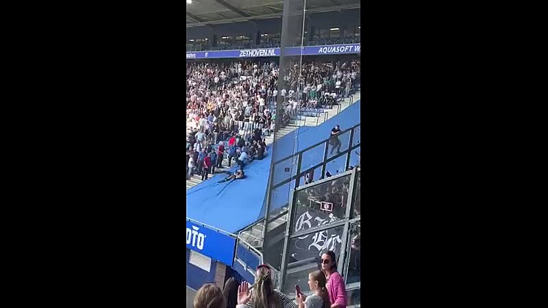 Terugkijken: Groningse supporters klimmen uit het uitvak en knokken met Heerenveen-fans.