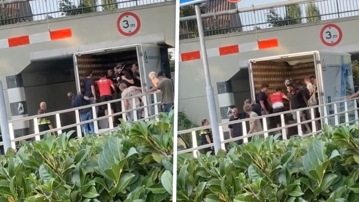 Zo moet het: Een busje helpen dat zichzelf heeft klemgereden onder een viaduct