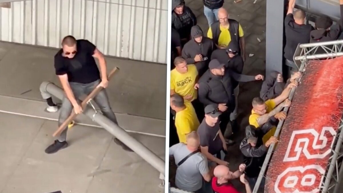 Op videobeelden is te zien hoe een eetkraam wordt omgegooid en het personeel in een hoek werd gedreven. Gelukkig liepen er ook nog mensen tussen die niet compleet achterlijk waren en zij zorgen ervoor dat het personeel in veiligheid werd gebracht.