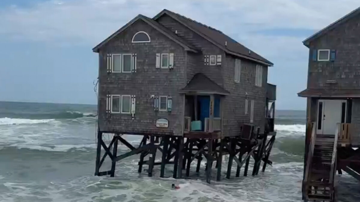Al drie andere gingen dit huis voor, wat dit het vierde huis maakt dat is opgeslokt door het water dankzij het stijgende zeeniveau en aanhoudende stormen. Het gebeurde op het Outer Banks-eiland Hatteras in North Carolina.