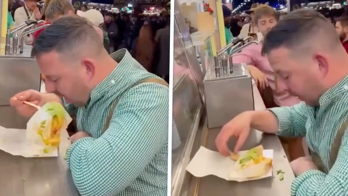 Als je zo dronken bent dat je het papier wat om je eten zit ook gewoon lekker opvreet