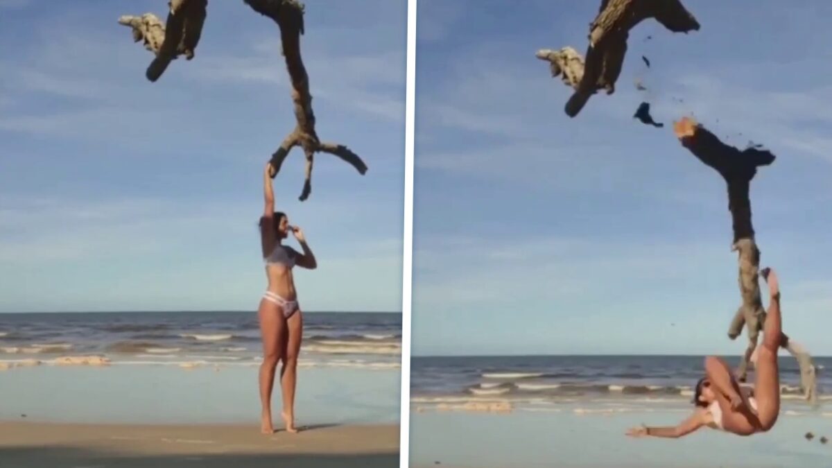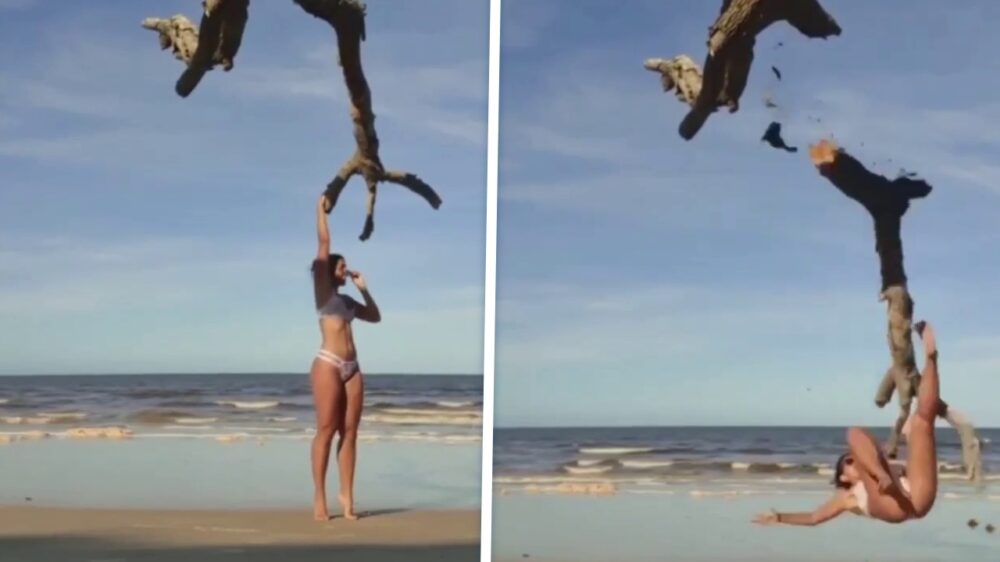 Na uren zonnebaden en zwemmen is het natuurlijk tijd om je telefoon erbij te pakken en je volgers jaloers te maken met een prachtig plaatje. Een dagje strand is tenslotte niet compleet zonder die perfecte Instagram-foto. Maar let er wel op dat je niet aan een stuk rottend hout gaat hangen. Gevalletje oude doos, maar ach, het uitzicht is nog steeds schitterend.