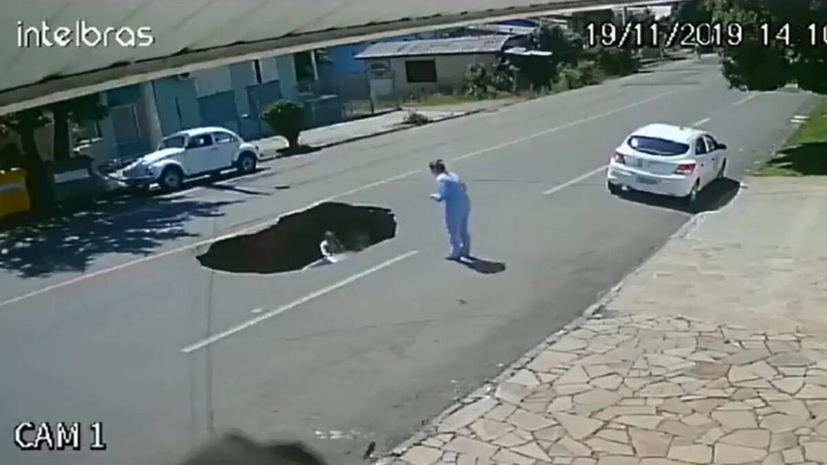Braziliaanse moeder zonder bril rijdt met haar dochter in een sinkhole Verkeer