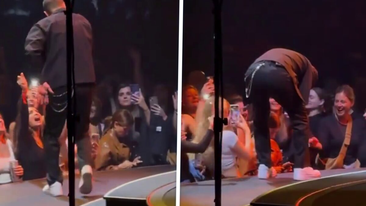 Lullig: Fan merkt niet dat Justin Timberlake voor haar neus staat omdat ze te druk is met appen
