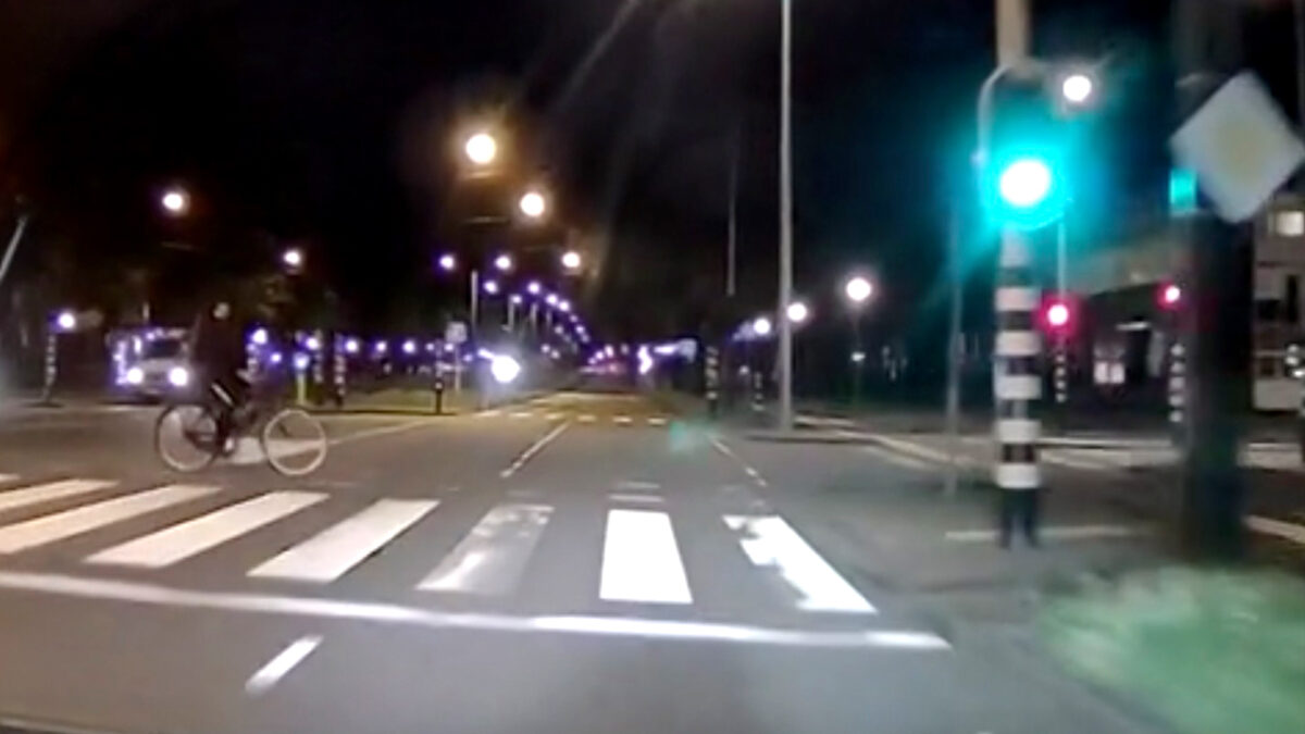 Fietser krijgt het voor elkaar om binnen 5 seconden bijna 2 keer aangereden te worden