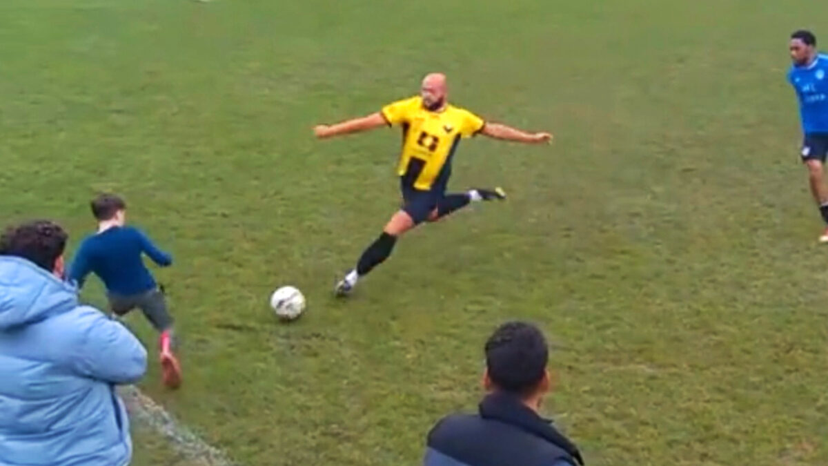 Jongen krijgt een lesje kelderklassetakcles als hij de bal probeert weg te trappen
