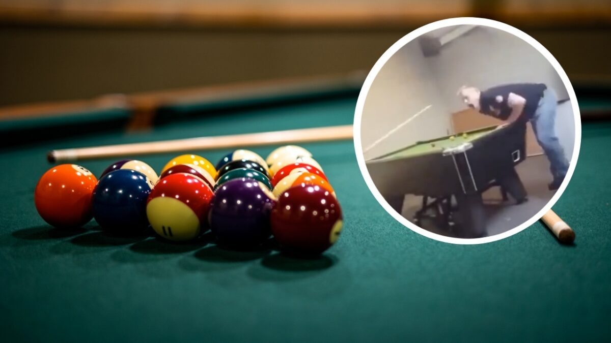 We kennen het allemaal: de VrijMiBo die nét iets te gezellig werd. Iedereen denkt na een paar biertjes ineens dat 'ie Ronnie O'Sullivan is, maar dat gaat natuurlijk altijd mis. Vooral als je de briljante ingeving krijgt om je goede vriend te vertrouwen met een keu in z'n hand.