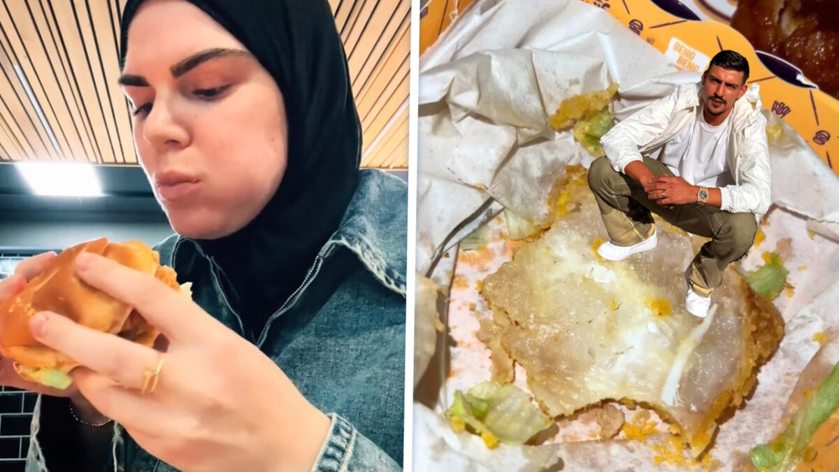 Deze vrouw dacht een lekker kipburgertje naar binnen te werken, maar na een paar happen werd vrij snel duidelijk dat de kip nog zó rauw was dat 'ie er elk moment vandoor kon gaan. 🤢