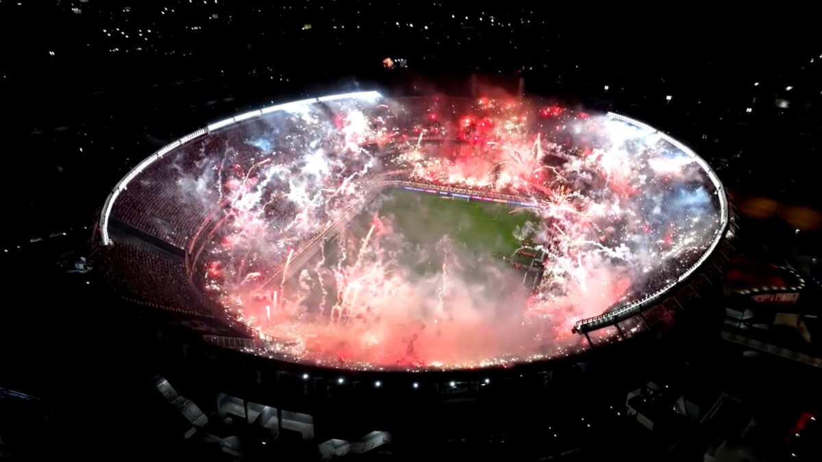 Fans van River Plate hebben het stadion in Buenos Aires in vuur en vlam gezet met een heerlijke vuurwerkshow om hun team een extra zetje te geven in de halve finale van de Copa Libertadores tegen Atlético Mineiro.
