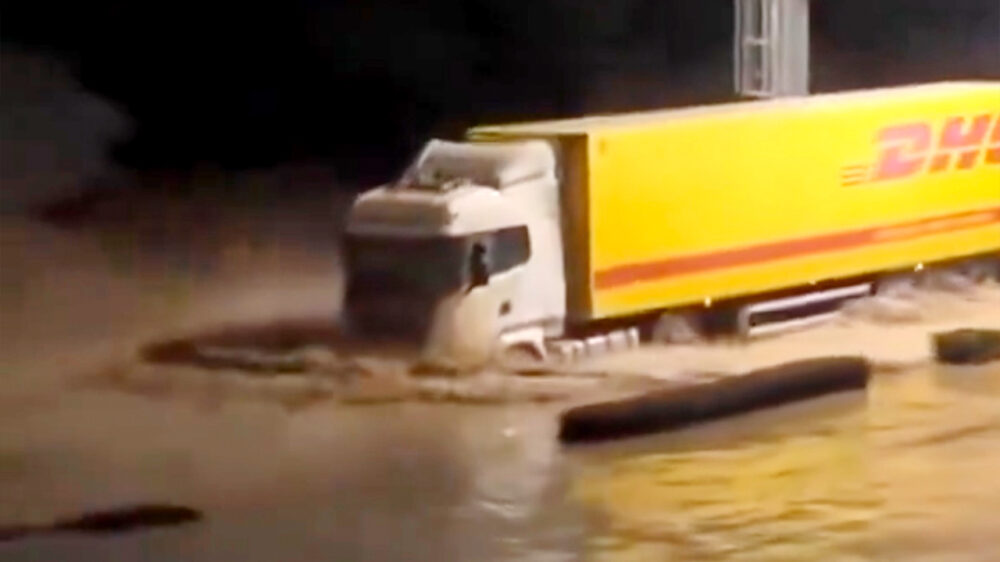 Spaanse vrachtwagenchauffeur van DHL schat volgelopen weg verkeerd in en besluit door te rijden