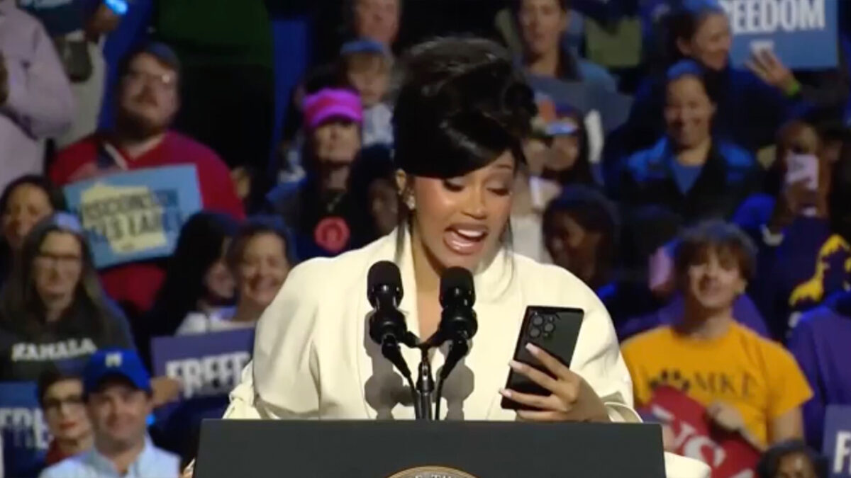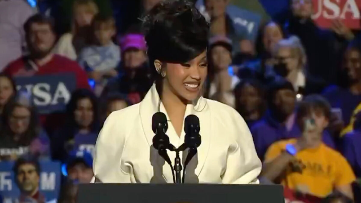 Cardi B met mond vol tanden bij Kamala Harris-rally als haar autocue niet werkt