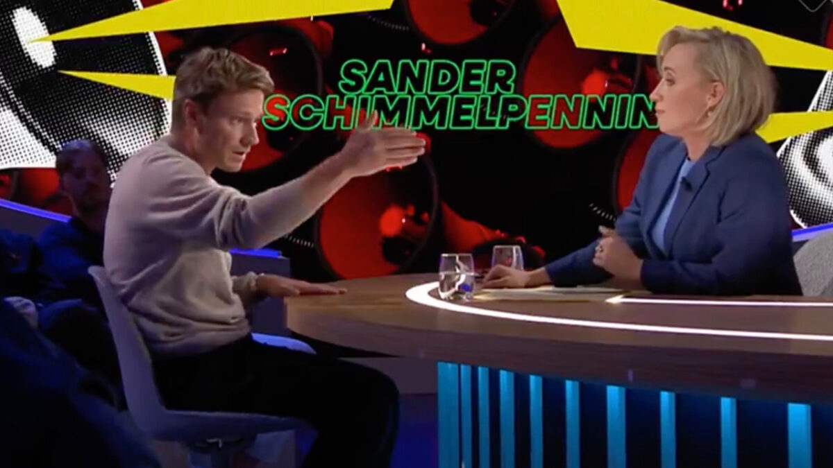Sander Schimmelpenninck gaat er met gestrekt been in en zet Eva Jinek met mond vol tanden TV