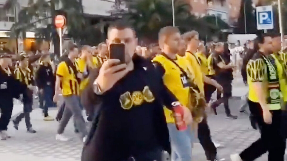 Bij een gezellig dagje uit met de stichting kan één supporter van de Duitse voetbalclub Borussia Dortmund het klaarblijkelijk niet echt waarderen dat iemand aan de zijkant staat te filmen. Dus wat doe je dan? Juist, je pakt je eigen telefoon erbij, loopt naar haar toe en gaat vlak voor d'r neus "terugfilmen". Deze agent te paard vond daar iets van en besloot kordaat op te treden.