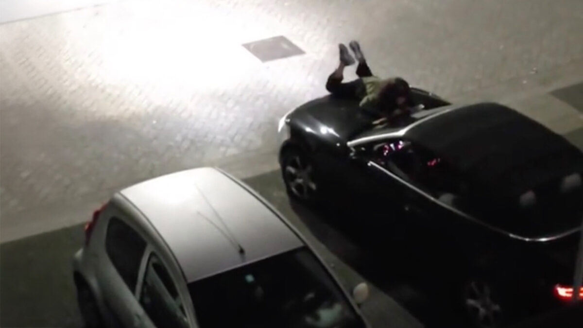 Vrouw in Hoofddorp klimt op motorkap terwijl haar vent rustig wegrijdt
