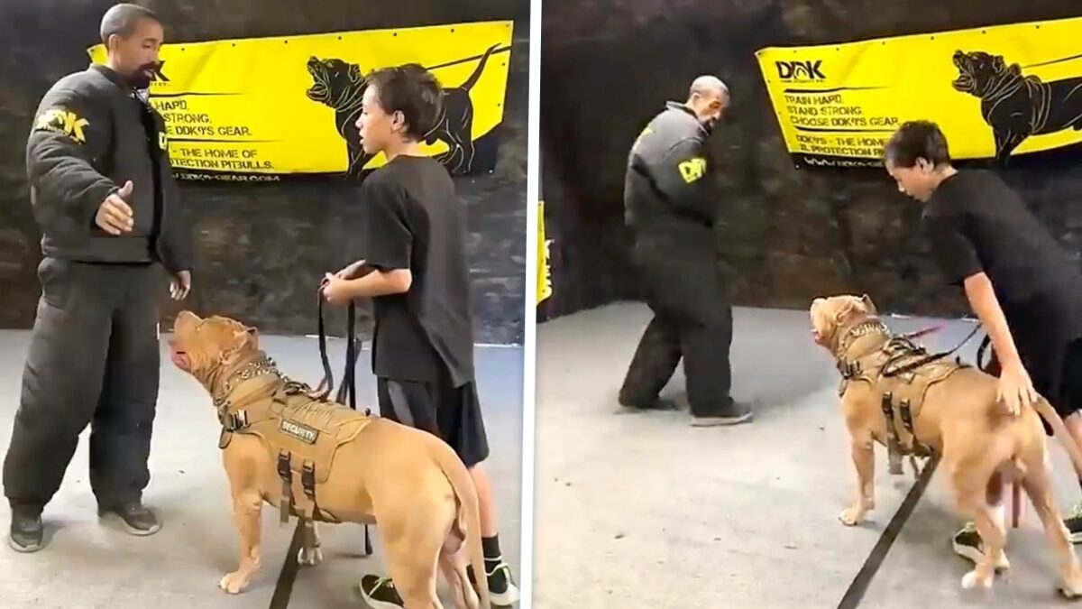 Een hond die op commando in standje Terminator schiet wanneer er gevaar op de loer ligt, dat klinkt misschien als iets uit een film maar deze trouwe viervoeter bewijst dat het ook in het echt kan. Perfect getraind en alert op elk signaal dat er iets mis is, springt hij in actie om een jongen te beschermen.
