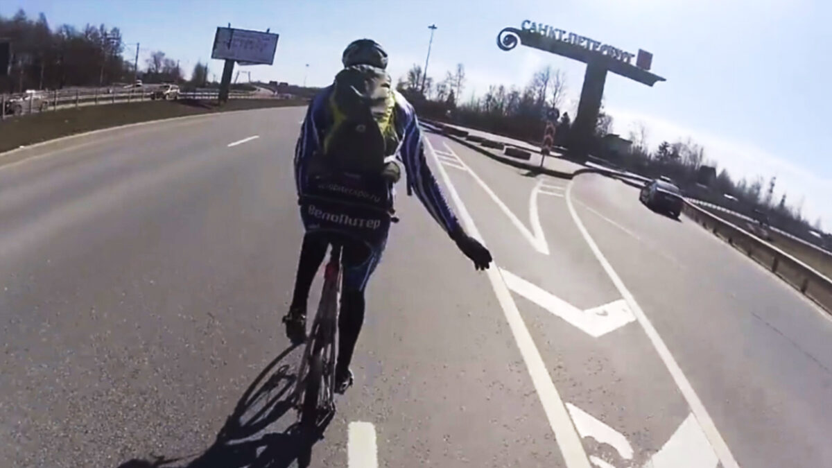 Als je dacht dat het op de Nederlandse wegen al chaotisch was met wielrenners, dan weet je bij dezen dat het altijd erger kan. Een groep Russische(?) wielrenners dacht dat ze wel via de snelweg een sportief rondje konden maken, maar daar dacht deze vrachtwagenchauffeur blijkbaar heel anders over.