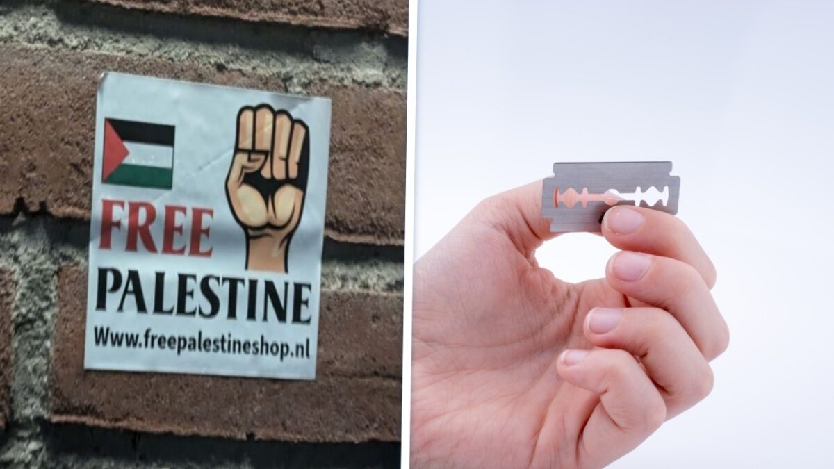 Weerzinwekkend: Scheermesjes aangetroffen achter pro-Palestijnse stickers in Amsterdam