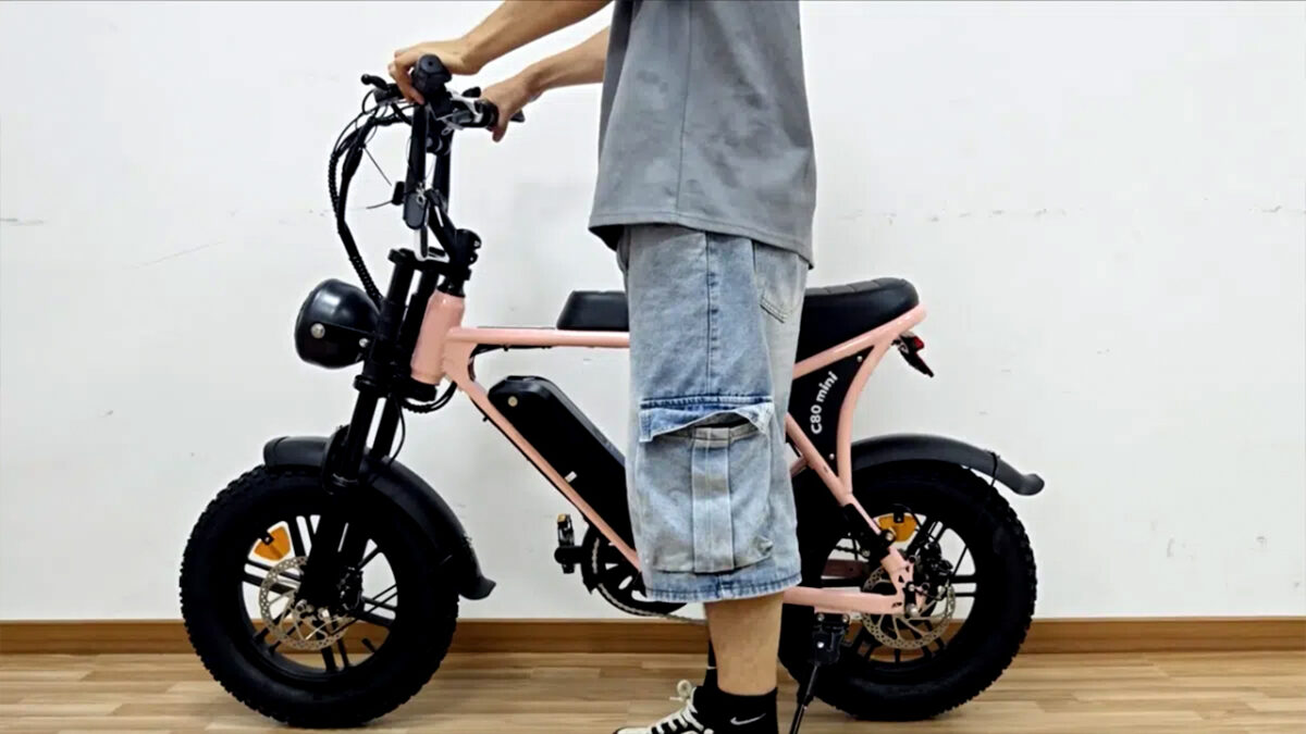 De nieuwe C80 Pro Mini heeft nog steeds die bekende dikke banden van 4 inch breed, maar in een wat kleiner formaatje van 16 in plaats van de standaard 20 inch. Voor een slordige €895,- kun je 'm in huis halen en volgens een van de aanbieders voldoet hij keurig aan de laatste regelgeving. Klinkt aardig, maar dit is dezelfde fabrikant die de beruchte V8 op de markt bracht; de eerste fatbike die officieel illegaal werd verklaard door de EU.