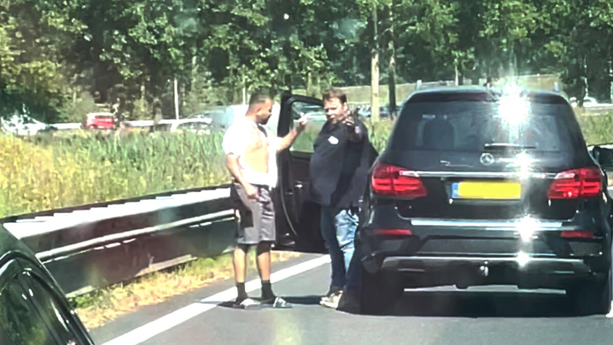 Ordinaire ruzie tussen 2 volwassen mannen wordt midden op de snelweg uitgevochten