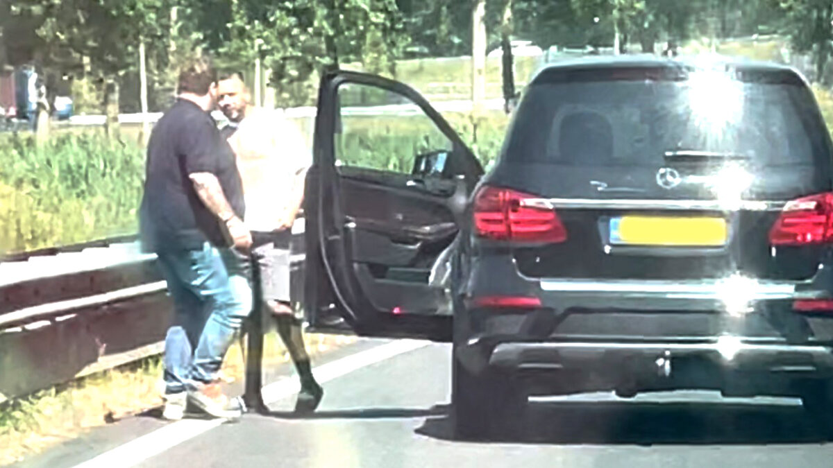 Ordinaire ruzie tussen 2 volwassen mannen wordt midden op de snelweg uitgevochten