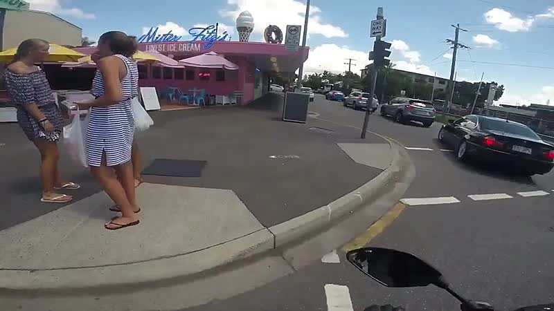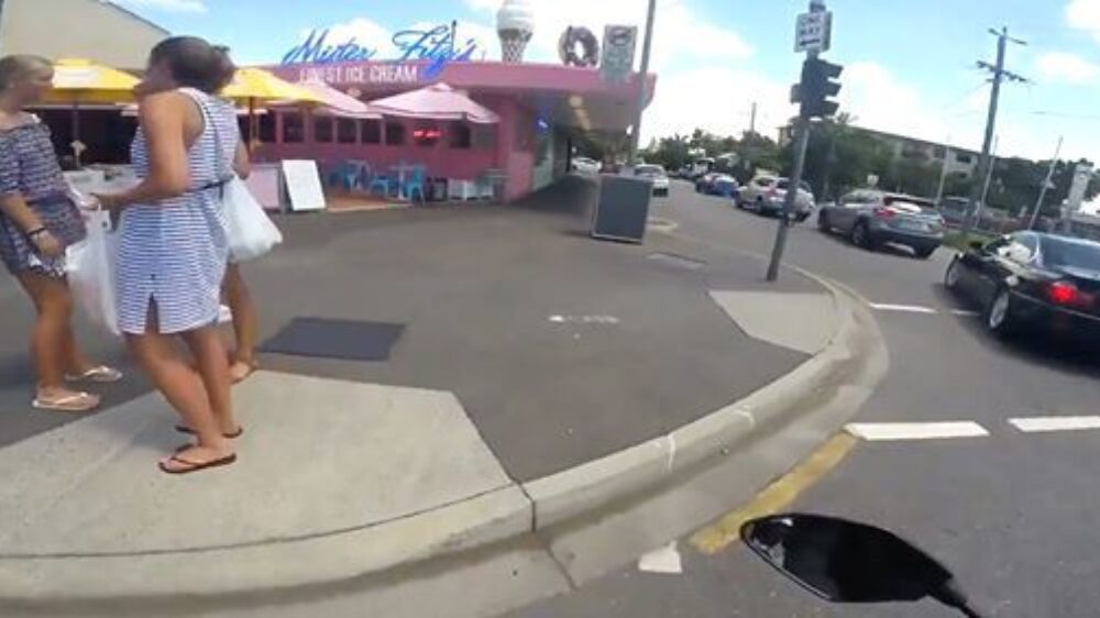 Natuurlijk is het verleidelijk om even te gluren als je een groepje mooie vrouwen ziet staan terwijl je op je motor langs komt zoeven, maar deze beelden bewijzen maar weer eens dat je beter voor je kunt kijken.