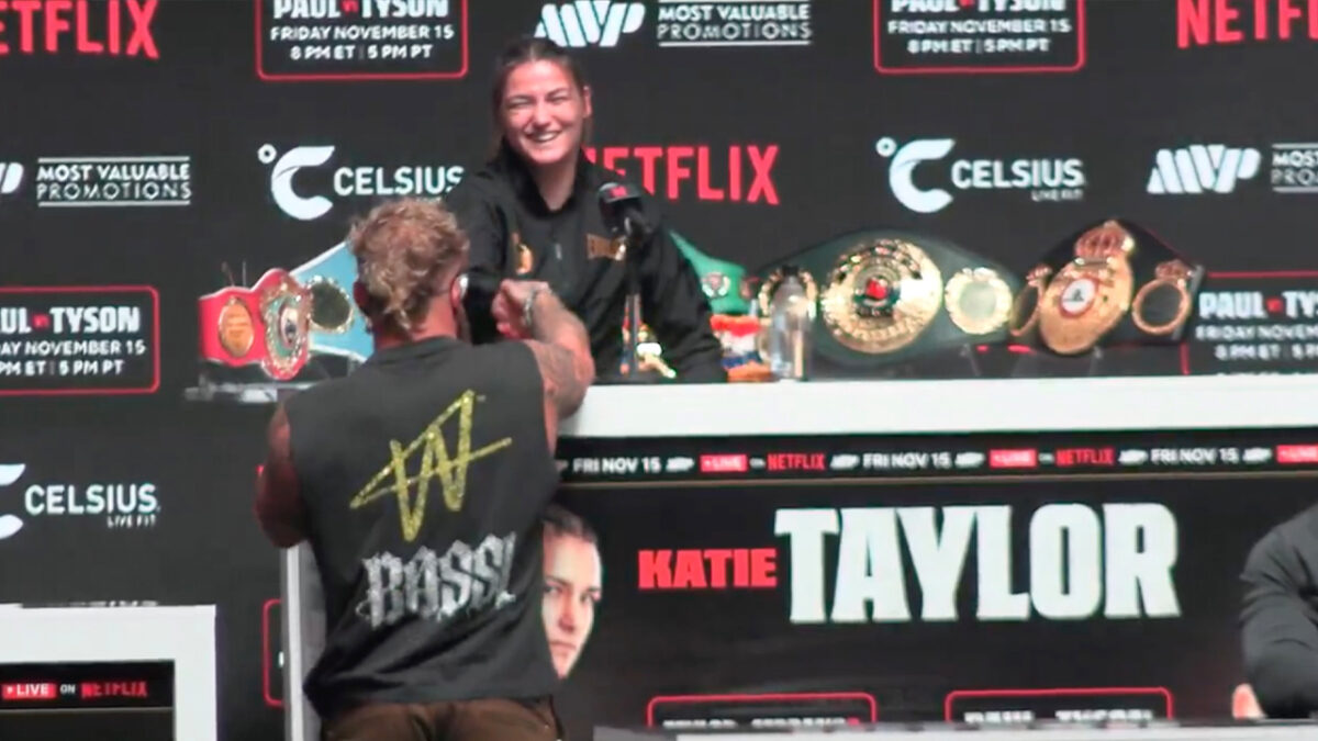De persconferentie van "het gevecht van de eeuw" werd niet alleen bezocht door "domme journalisten" die vragen stelden waar Jake Paul liever geen antwoord op geeft, maar er zat natuurlijk ook nog een aantal andere boksers op het podium waarmee hij wel een aantal weddenschappen wilde aangaan.