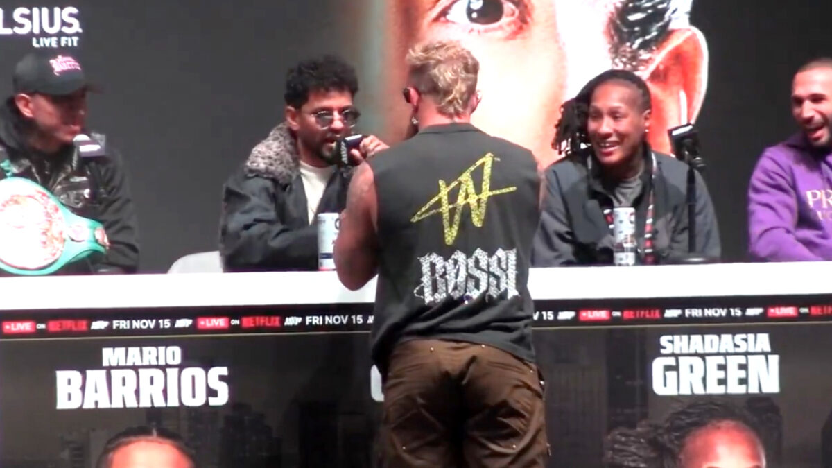 De persconferentie van "het gevecht van de eeuw" werd niet alleen bezocht door "domme journalisten" die vragen stelden waar Jake Paul liever geen antwoord op geeft, maar er zat natuurlijk ook nog een aantal andere boksers op het podium waarmee hij wel een aantal weddenschappen wilde aangaan.