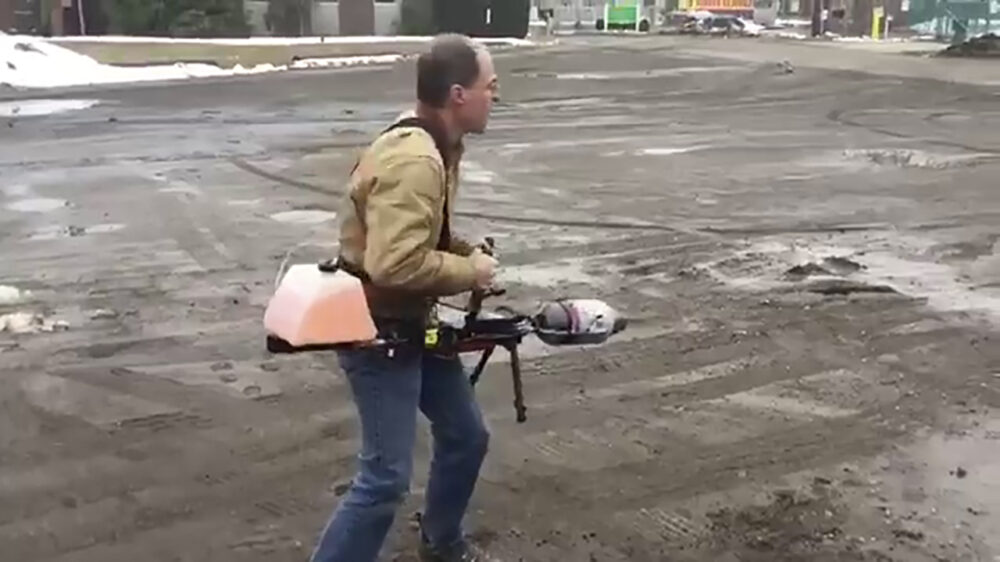 De bladblazer is een onmisbare metgezel voor iedereen met een oprit vol herfstbladeren. Scheelt je een hoop tijd en gevloek als je niet meer hoeft te harken en te vegen. Deze specifieke bladblazer is niet zomaar een oude bekende uit je schuur. Nee, het is een turbine aangedreven blazer waarmee je gelijk de hele straat bladvrij maakt. Oordopjes vereist!