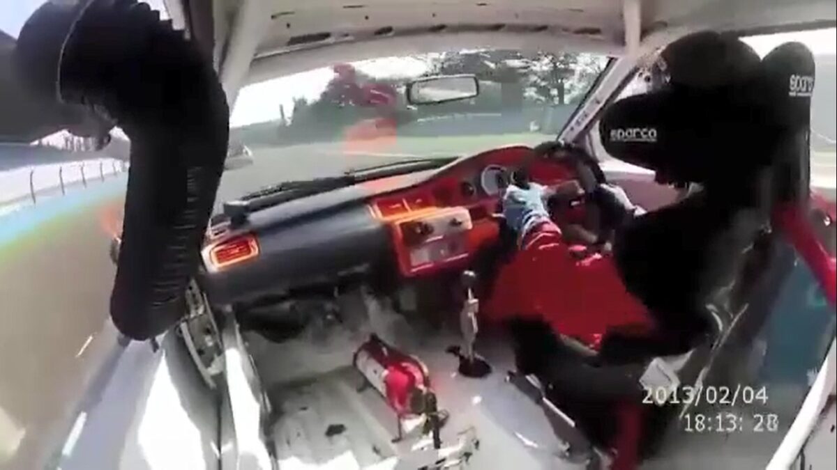 Autocoureur komt ontzettend goed weg als een stuk metaal door zijn voorruit vliegt Bizar